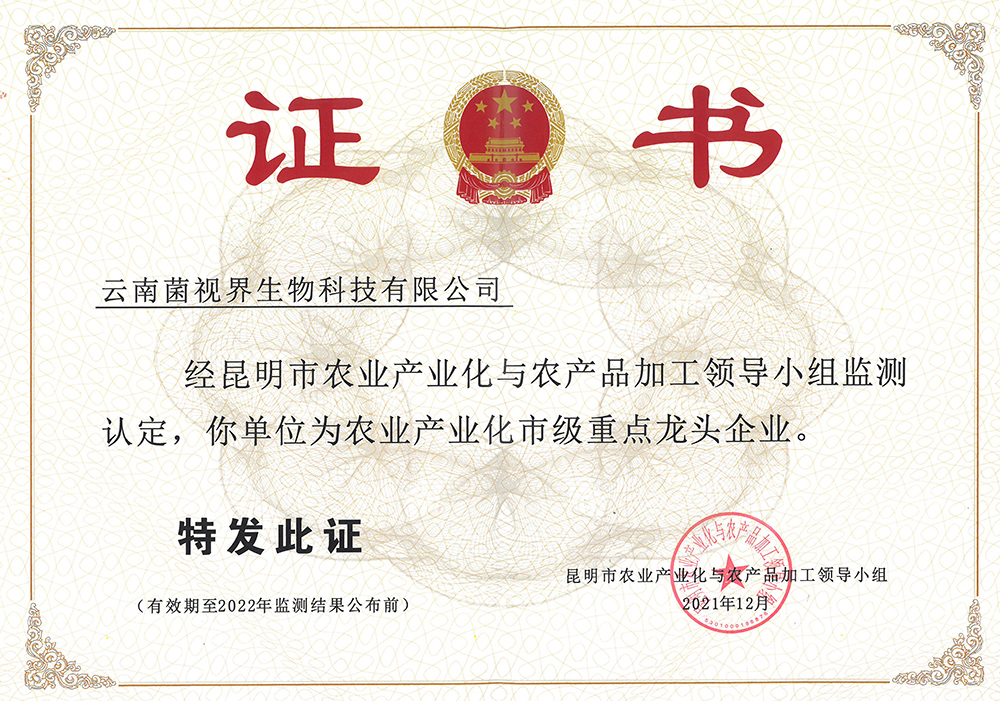 云南j9.com生物科技有限公司成立于2016年6月29日,注册资本3450万元。公司的战略是立足云南丰富的野生食用菌资源,通过技术研发和驯化,进行珍稀蘑菇工厂化栽培,变云南优势为产业优势。 公司使命和愿景是:开发中国自己的食用菌菌种,摆脱对进口菌种的依赖,成为中国珍稀食用菌工厂化生产领头羊,云南食用菌行业领军企业。 目前公司已成为高新技术企业,云南省“专精特新”中小企业,云南省企业技术中心,云南省知识产权优势企业,农业产业化市级重点龙头企业,建立了云南(昆明)张劲松药用真菌专家工作站。 公司目前申请专利 50 项,其中授权的发明专利24项,实用新型5项;发表论文19篇,种子鉴定4个,成果 5 项,商标6项。